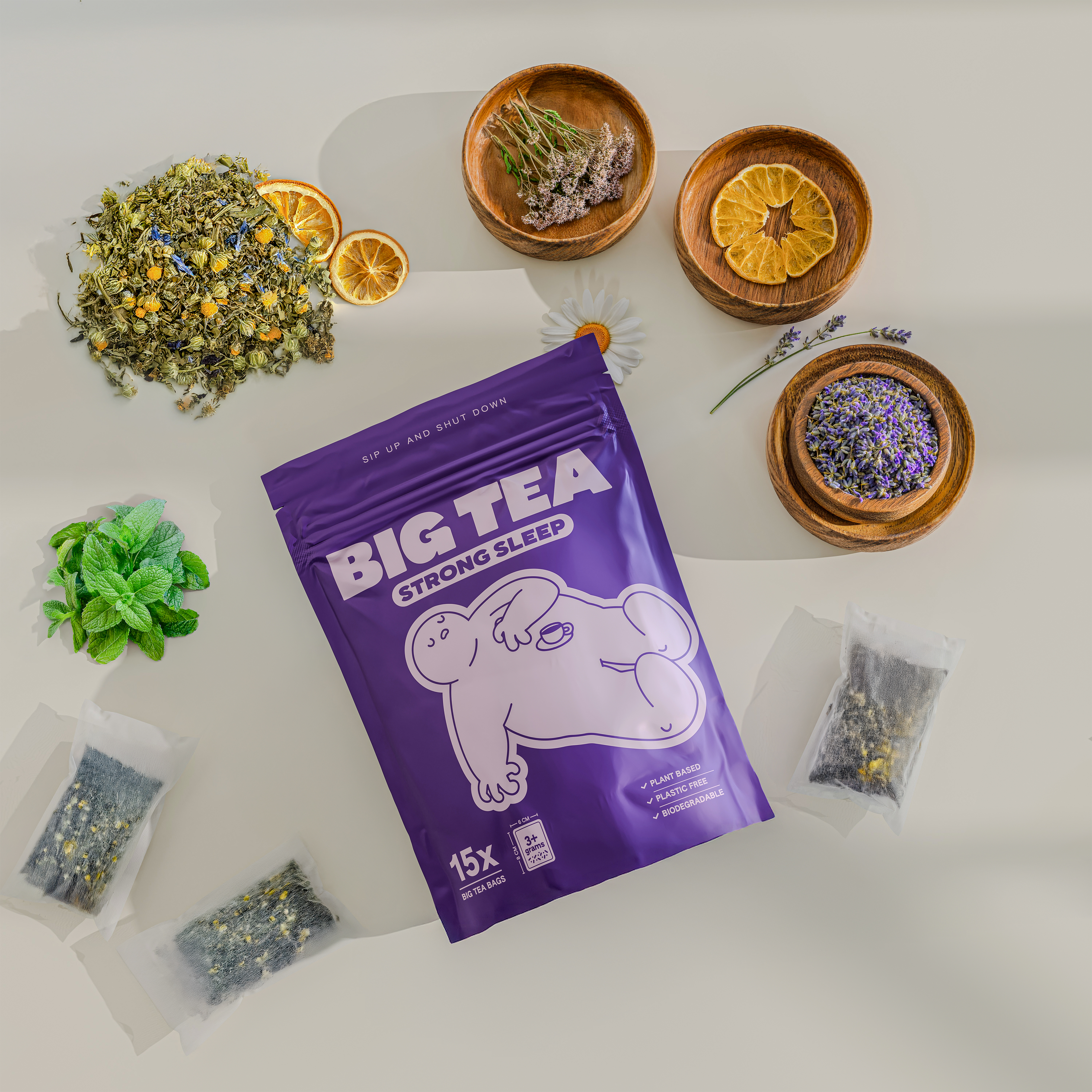 Strong Sleep Tea is a meticulously formulated herbal blend of 9 science-backed botanicals—including Valerian Root, Holy Basil, and Lemon Balm—each selected for its specific role in promoting relaxation and supporting quality sleep. Over three grams of large-cut herbs fill every plastic-free, biodegradable tea bag, delivering a robust infusion that doesn't compromise on taste.