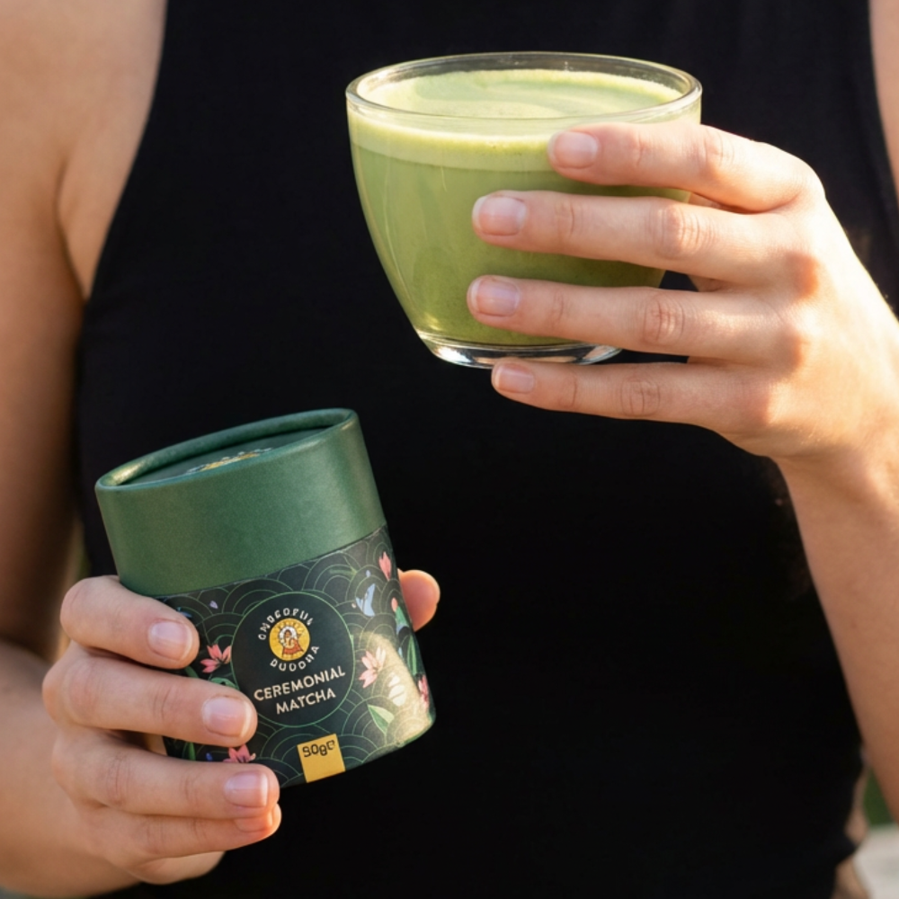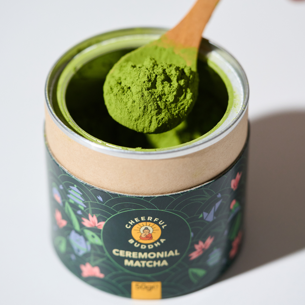 Cheerful Buddha's authentic Ceremonial Grade Matcha is stone-ground from Japan's first harvest leaves. Crafted specifically for traditional whisking and drinking, it has a smooth, naturally umami-rich flavour without bitterness. Unlike lower grades often used for blending, genuine ceremonial matcha offers a balanced, calm energy that honours centuries of Japanese tea tradition. This matcha is gluten-free, vegan, additive-free, and sourced directly from Japan to ensure exceptional quality and authenticity. Each cup provides the vibrant green colour, silky texture, and refined taste that define premium matcha.