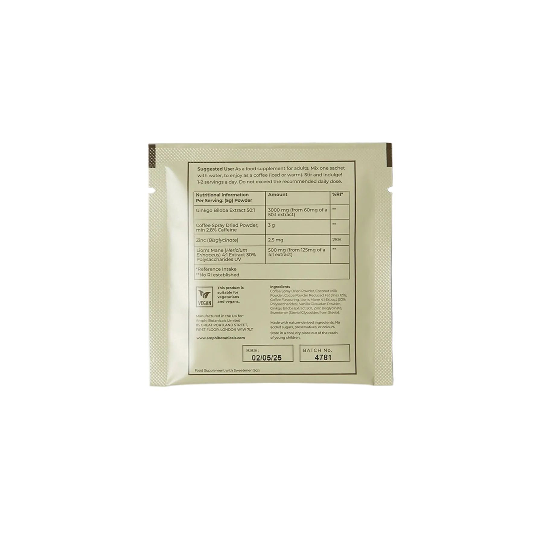 Elevate your daily ritual with Focus, a unique coffee blend that's a boon for both your taste buds and brainpower. Savour the inviting notes of Cocoa married with the creaminess of Coconut Milk Powder, and get cognitive support from nature's own brain-boosters like Lion's Mane and Ginkgo Biloba. Purely from the earth, Focus is devoid of any artificial additives or preservatives, promising a wholesome, healthy jolt of caffeine (114mg per serving).