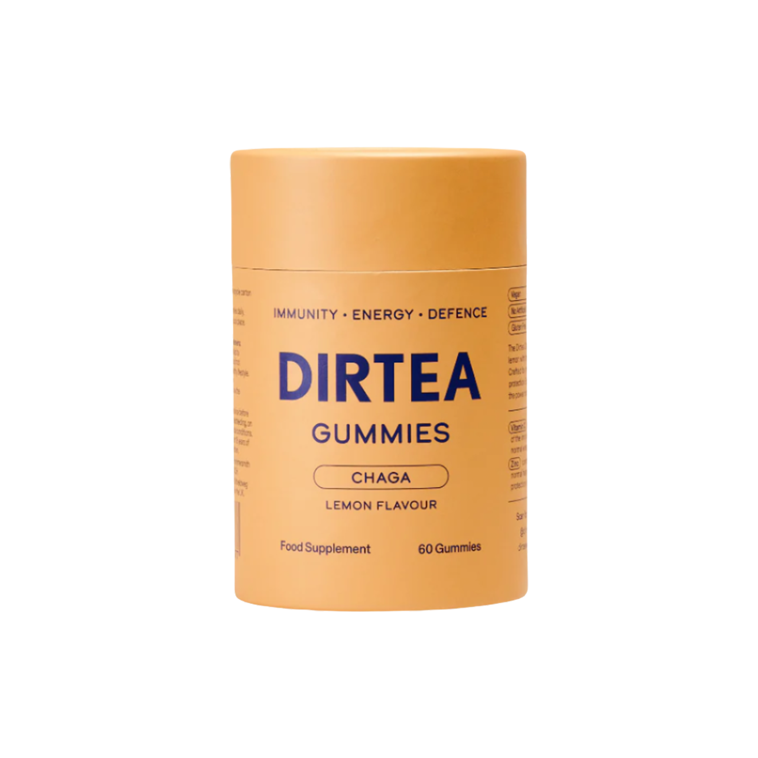 Chaga Extract (Inonotus obliquus), Vitamin C (Ascorbic Acid), Zinc (Zinc Citrate), Purified Water, Natural Flavour, Acidity Regulator (Sodium Citrate), Gelling Agent (Pectin), Acid (Citric Acid), Glazing Agents (MCT Oil, Carnauba Wax), Sweeteners (Maltitol Syrup, Isomalt, Maltitol, Xylitol, Steviol Glycosides from Stevia)