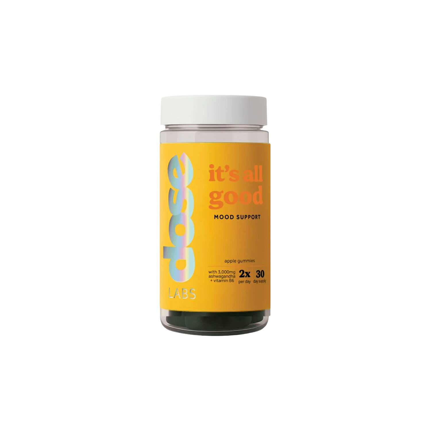 Life has a way of throwing curve balls at you and when stress creeps in, it can be hard to get back to your chill. Dose Labs has the answer: It's All Good Gummies. Formulated with mood-balancing natural Ashwagandha, energising Rhodiola, and a healthy helping of B Vitamins, these citrus flavoured gummies have the bonus of being vegan-friendly and made with 100% natural flavourings. Give yourself the daily dose you need to fight off stress and live like It's All Good.