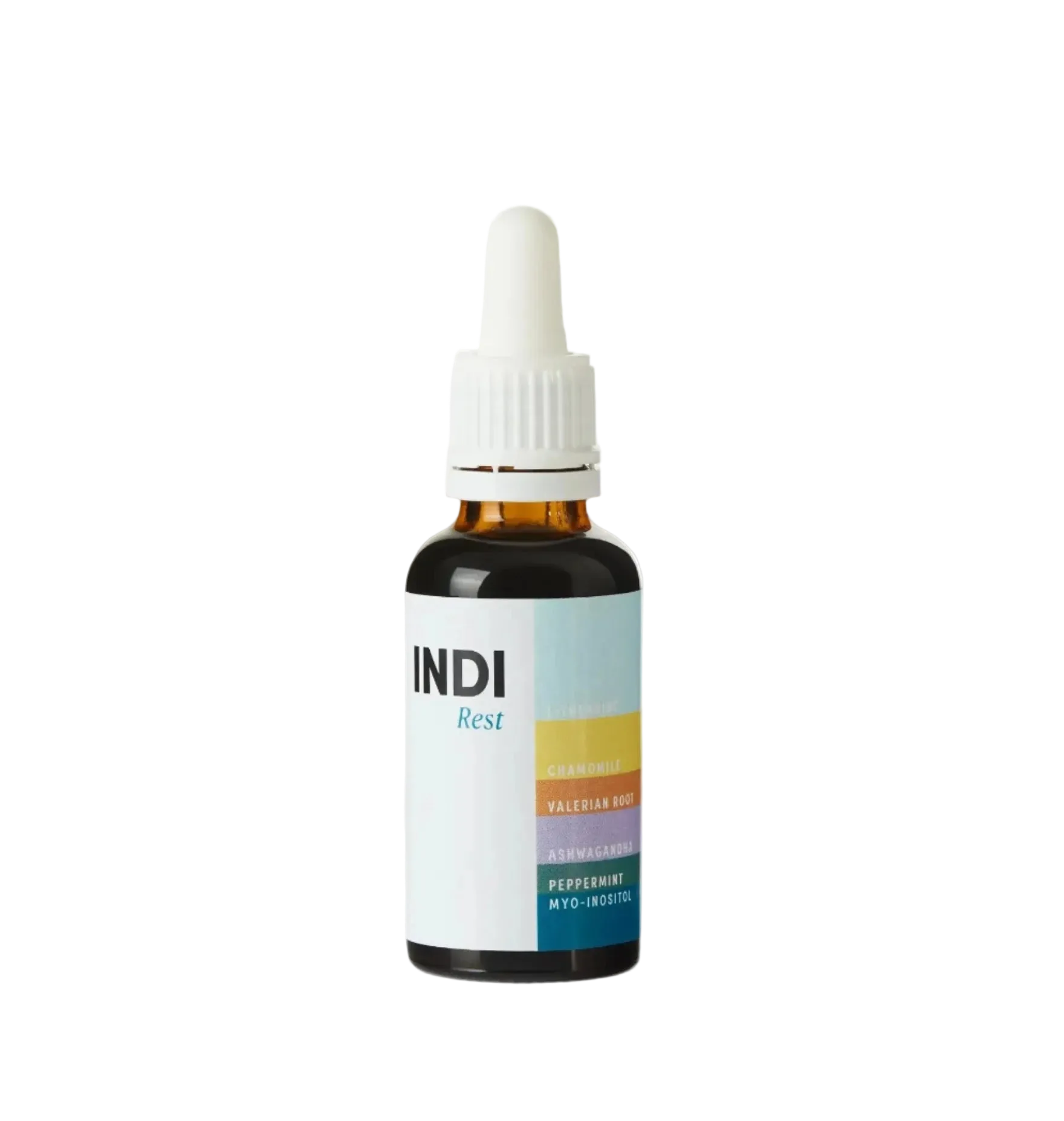Distilled Water, Vegetable Glycerol, Organic Green Tea Extract (30% L-Theanine), Chamomile Flower Extract, Valerian Root Extract, Ashwagandha, Inositol (Myo-Inositol), Potassium Sorbate, Natural Peppermint Flavouring, Stevia Leaf Extract