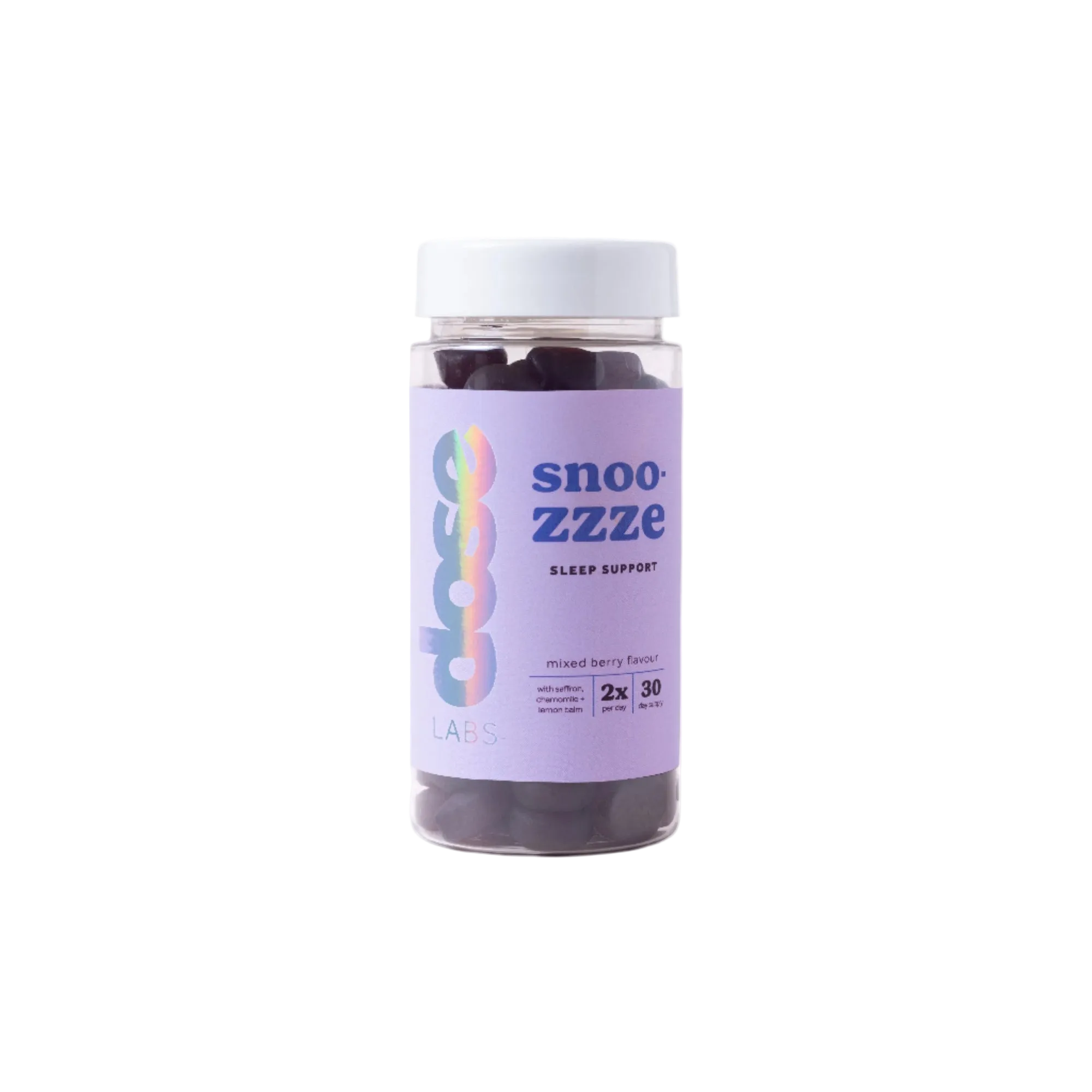 We all know how hard it can be to switch off from our buzzing, ever-connected lives and get the rest we need. Let these berry flavoured gummies give you the peace of mind you deserve. Made with Saffron, Chamomile, Lemon Balm, Vitamin B6 and Zinc, these natural sleep aids are designed to help you relax while feeling both mentally and physically refreshed upon waking.