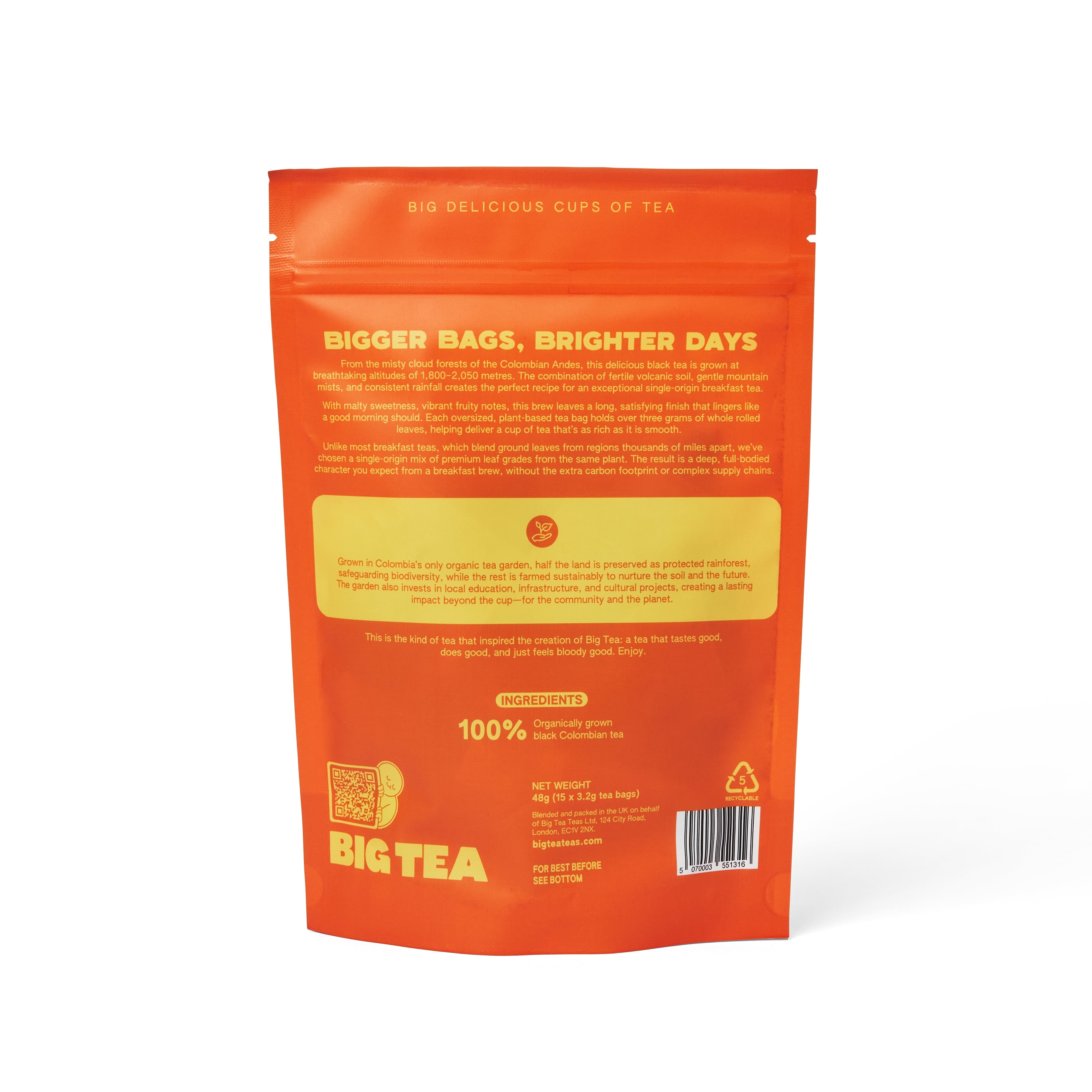 Each plant-based tea bag contains over three grams of whole rolled leaves, ensuring a full-bodied, smooth cup with a lingering finish. Unlike conventional breakfast blends that combine leaves from multiple continents, single-origin sourcing means you're enjoying a pure, consistent flavour whilst supporting a simpler, more transparent supply chain.