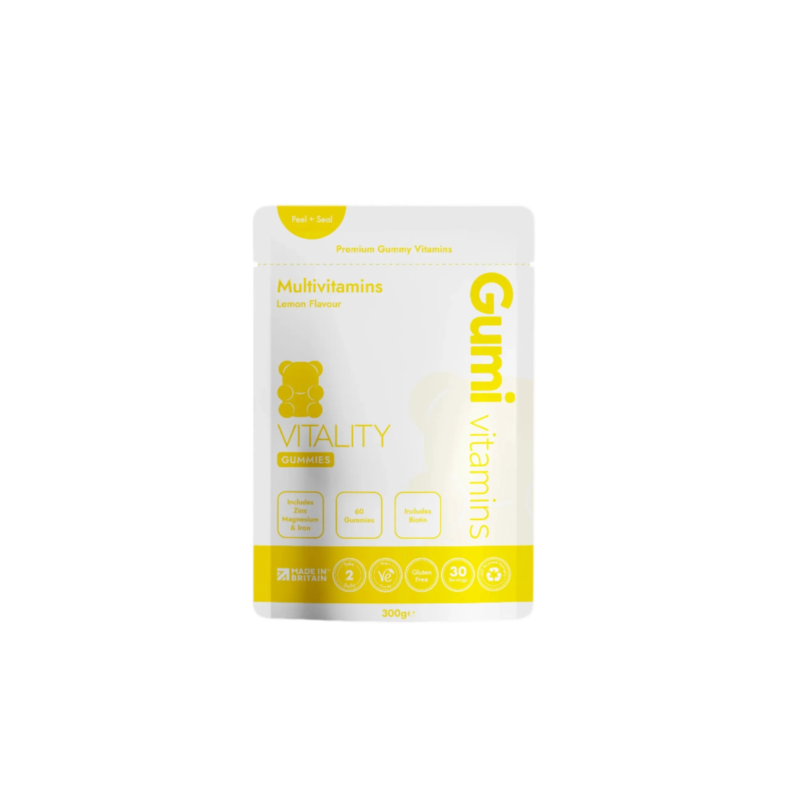 Get the most out of your daily wellness routine with Vitality Multivitamin Gummies, bursting with essential vitamins and minerals! Each gummy is packed with vitamins A, B, C, E, Iron, Calcium, and Potassium, Magnesium, and Zinc, to boost energy and the immune system, nourish your body, and support eye, bone and skin health. Plus, the refreshing taste of lemon makes taking your daily dose a delightful experience. Recharge your vitality with these vegan and gluten-free gummies.