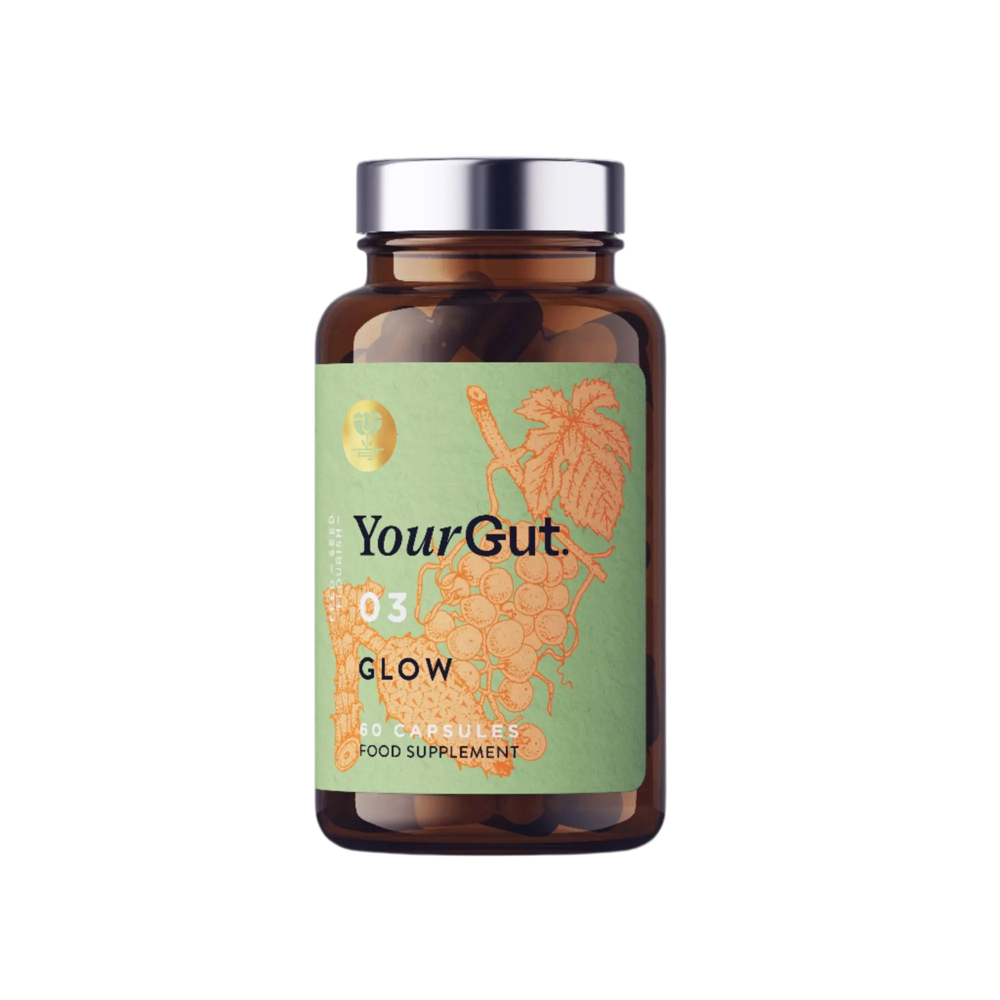 YourGut's 03 Glow is a complete supplement crafted by Nutritional Therapists to support healthy skin, hair, and nails from within. This synbiotic formula features a blend of 10 Billion CFUs of beneficial bacteria and essential nutrients, plus Hyaluronic Acid and MSM, which work together to promote skin hydration and collagen formation. Along with Vitamin C, Zinc, and Biotin, 03 Glow also includes plant-based ingredients like Butterfly Pea Flower, Grapeseed Extract, and Pine Bark Extract to support a healthy skin microbiome. Trust in the power of pure, clean ingredients with no unnecessary fillers or binders.