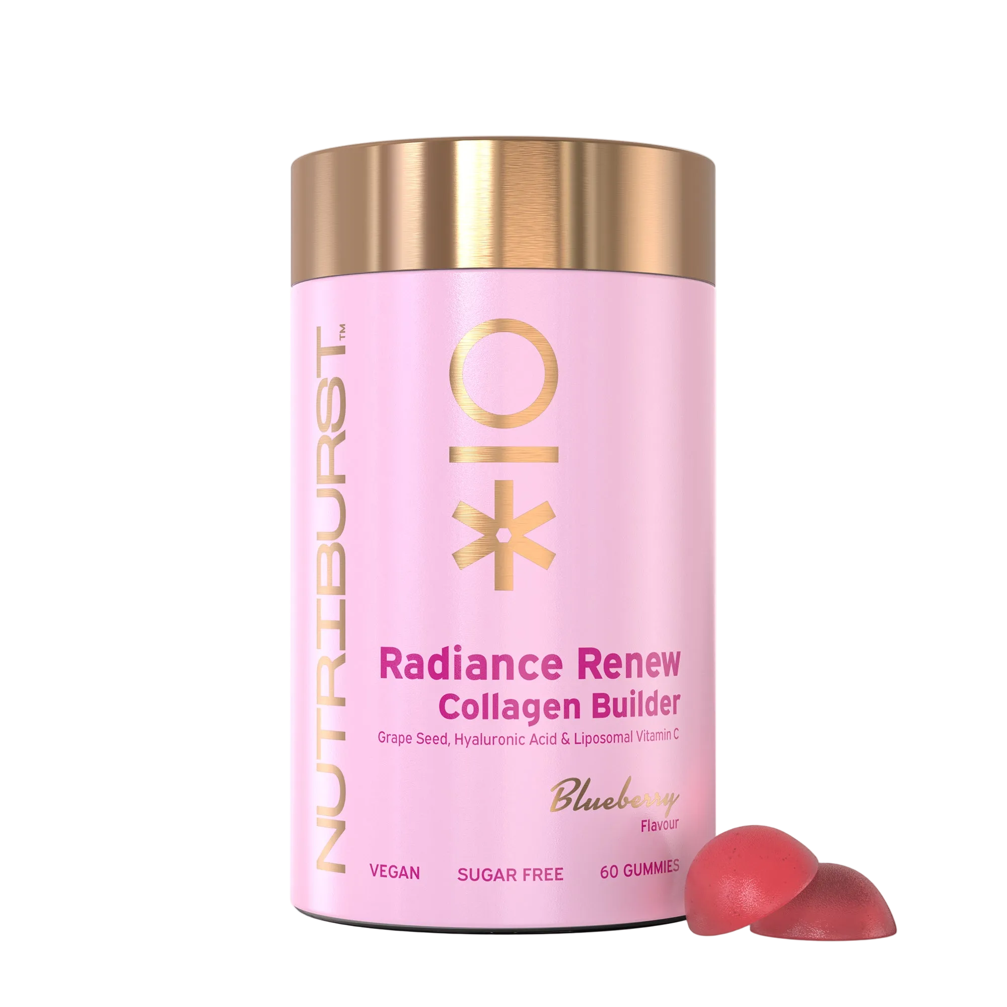Radiance Renew Gummies provides comprehensive skincare support to enhance collagen production, maintain hydration, and elevate your natural radiance. This advanced formula features a unique blend of liposomal Vitamin C to promote collagen synthesis, Hyaluronic Acid to retain skin moisture, and Grape Seed Extract for antioxidant defense. The addition of Copper helps support normal pigmentation and strengthens connective tissues, contributing to a firmer skin texture.