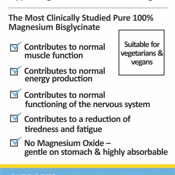 Transform your wellness routine with this powerfully-dosed magnesium bisglycinate supplement. At 165mg of elemental magnesium per serving, this formula is highly bioavailable whilst remaining remarkably gentle on your stomach. Two capsules a day help to sustain energy levels, maintain muscular function, and support nervous system balance. Whether you're an athlete optimising recovery, a professional managing fatigue, or simply committed to comprehensive wellness, this supplement is convenient and vegan-friendly.